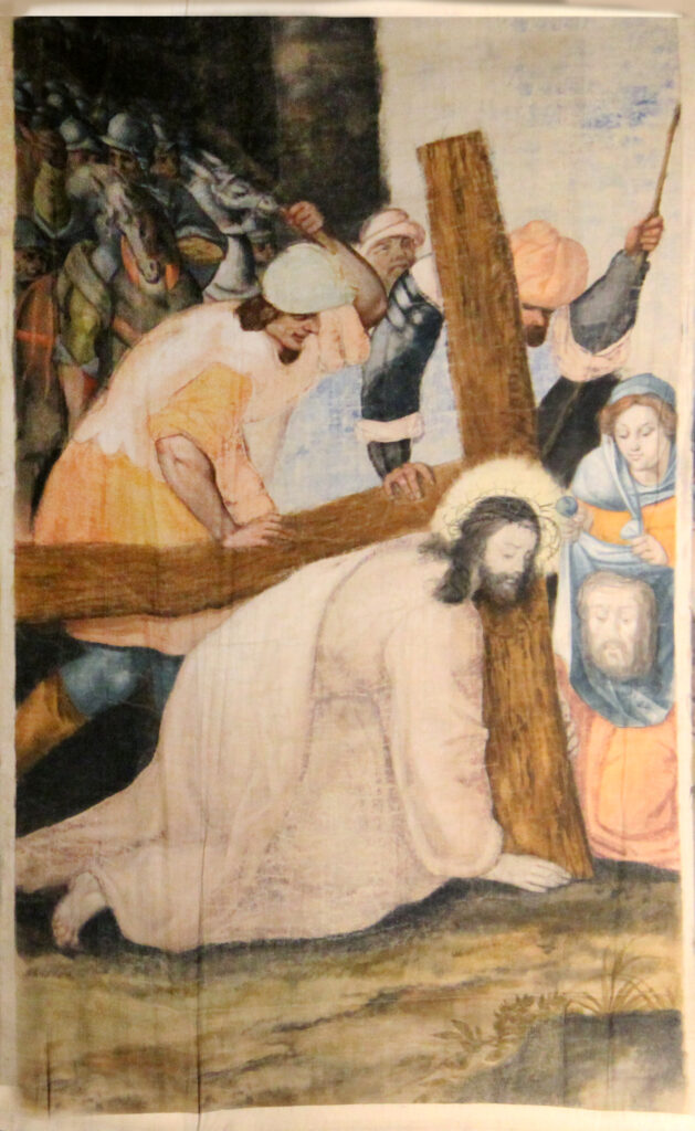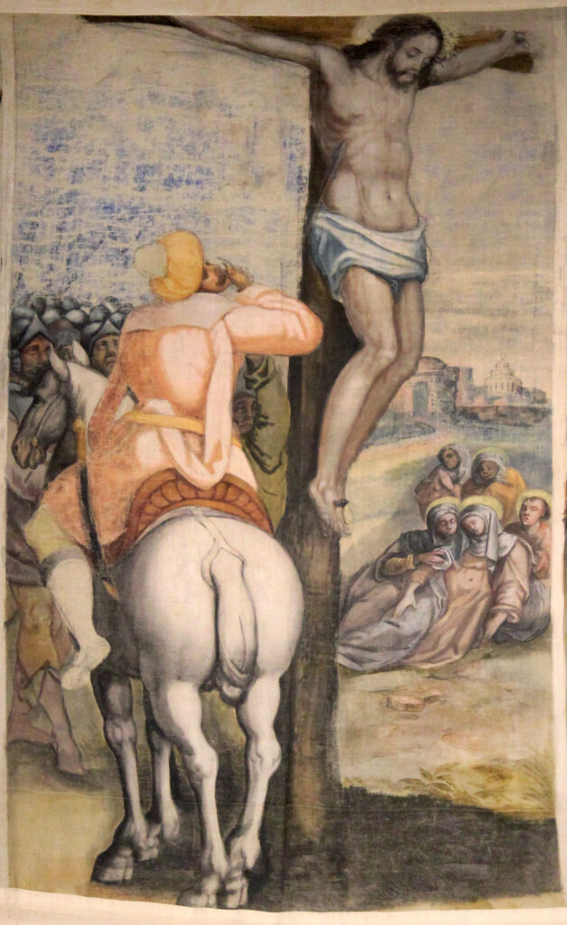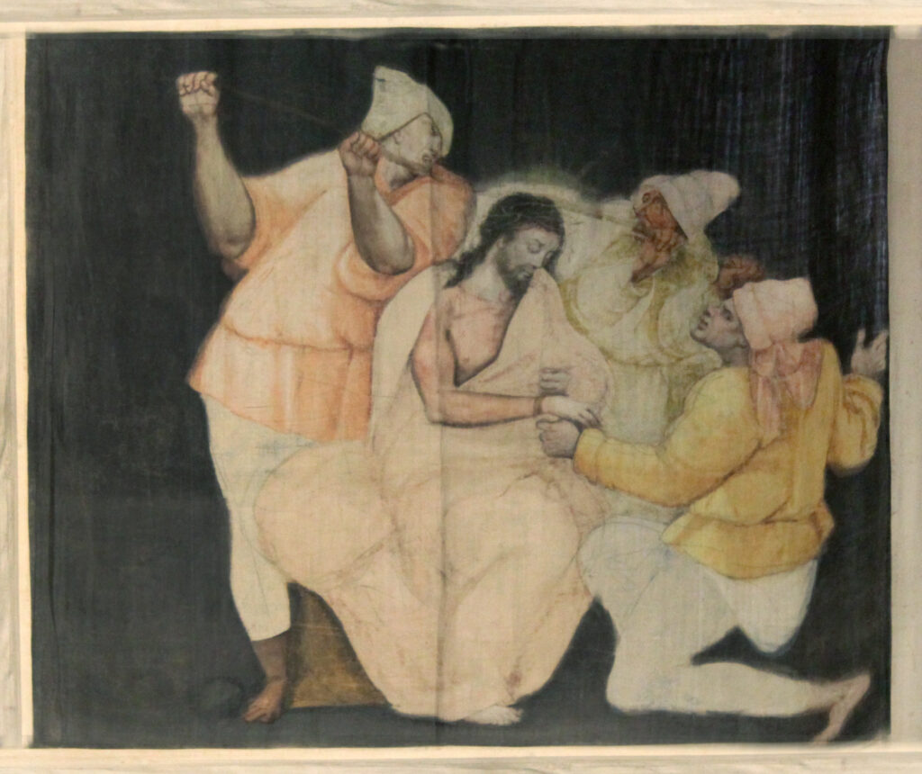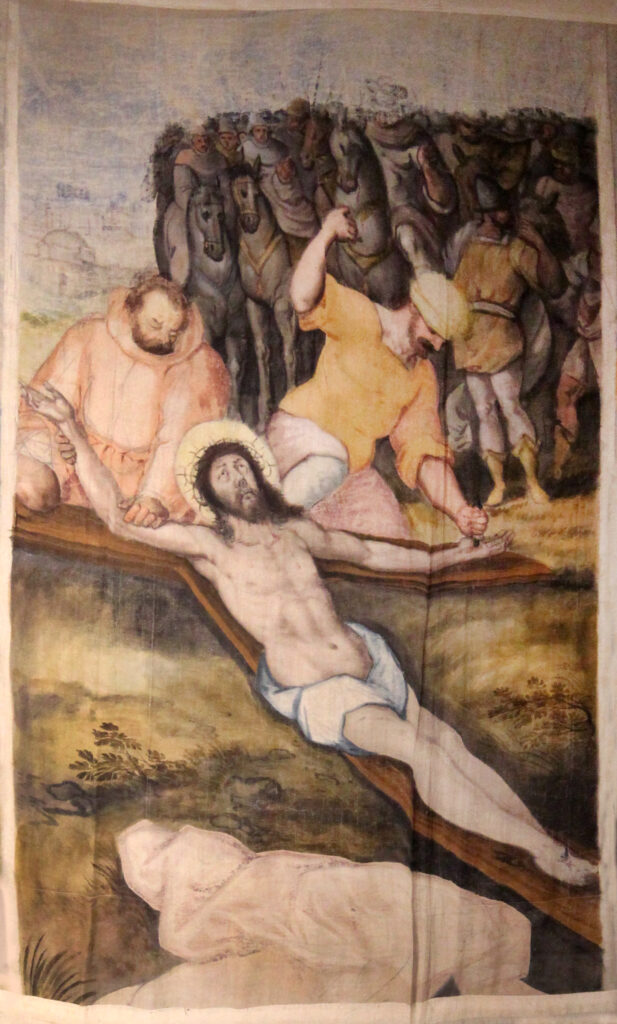 La escena representada en este fragmento se narra como se recoge en el párrafo anterior en el “Evangelio según San Juan”. En otro texto bíblico apócrifo (el “Evangelio de Nicodemo”), se concreta que un soldado romano, llamado Longinos, atravesó el cuerpo de Jesús cuando estaba en la cruz. Es una de las escenas en las que se hace más patente la anomalía de representar a los soldados que infligen el martirio a Jesús con rasgos otomanos, a pesar del origen romano que les atribuye la historiografía.